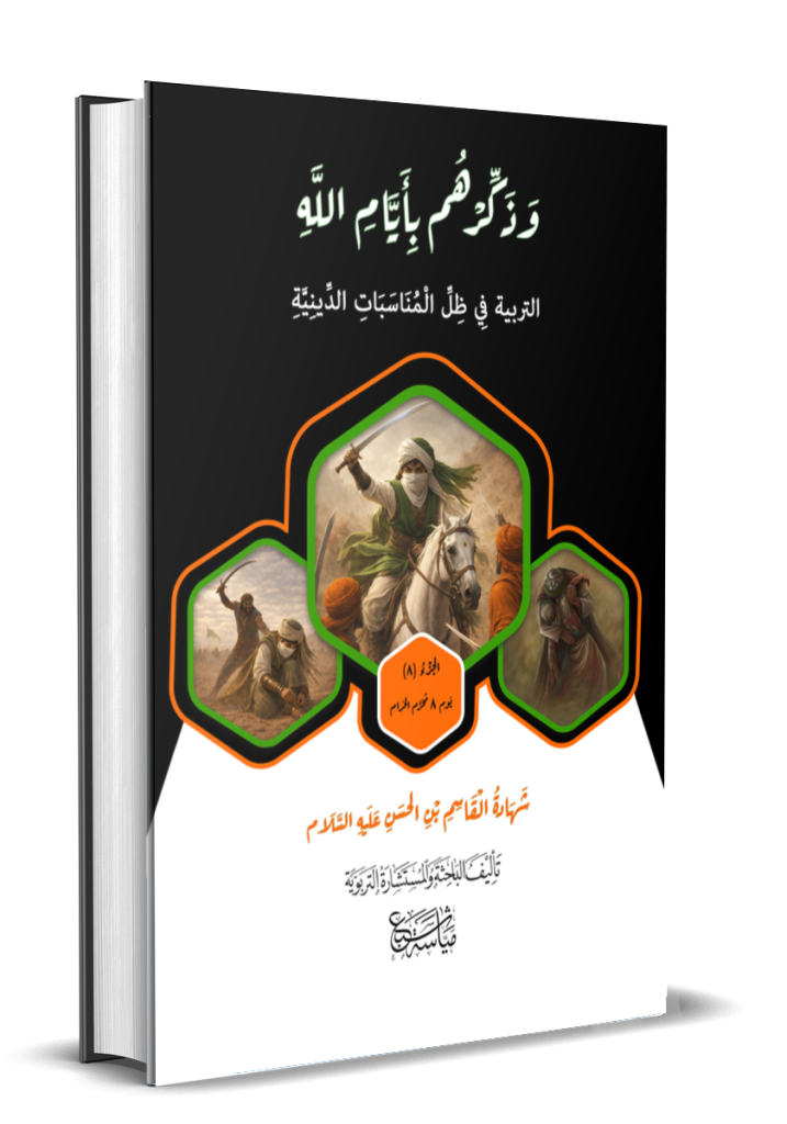 كتاب: (وَذَكِّرْهُم بِأَيَّامِ اللَّهِ: التربية فِي ظِلِّ الْمُنَاسَبَاتِ الدِّينِيَّةِ)، تأليف مياسة شبع-الجزء الثامن يتناول اليوم الثامن من محرم عن شهادة القاسم عليه السلام-لمشاهدة الكتاب أو طباعته اضغط على صورة الغلاف
