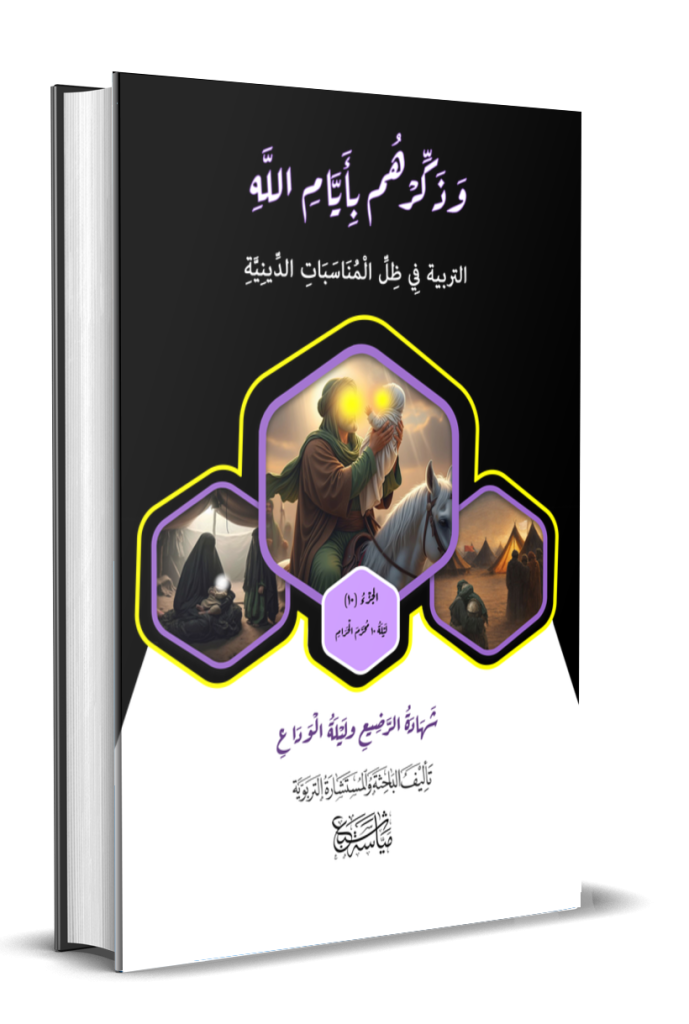 كتاب: (وَذَكِّرْهُم بِأَيَّامِ اللَّهِ: التربية فِي ظِلِّ الْمُنَاسَبَاتِ الدِّينِيَّةِ)، تأليف مياسة شبع-الجزء العاشر يتناول الليلة العاشرة من محرم عن شهادة عبد الله الرضيع عليه السلام وليلة الوداع-لمشاهدة الكتاب أو طباعته اضغط على صورة الغلاف