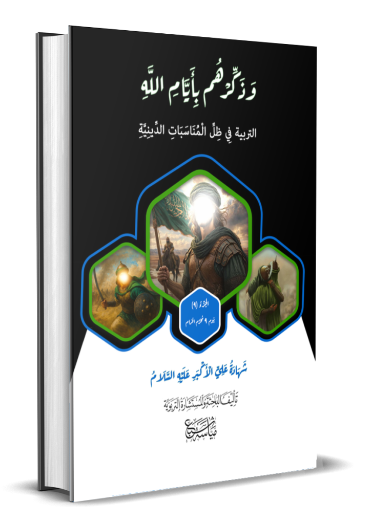 كتاب: (وَذَكِّرْهُم بِأَيَّامِ اللَّهِ: التربية فِي ظِلِّ الْمُنَاسَبَاتِ الدِّينِيَّةِ)، تأليف مياسة شبع-الجزء الثامن يتناول اليوم التاسع من محرم عن شهادة عليّ الأكبر عليه السلام-لمشاهدة الكتاب أو طباعته اضغط على صورة الغلاف
